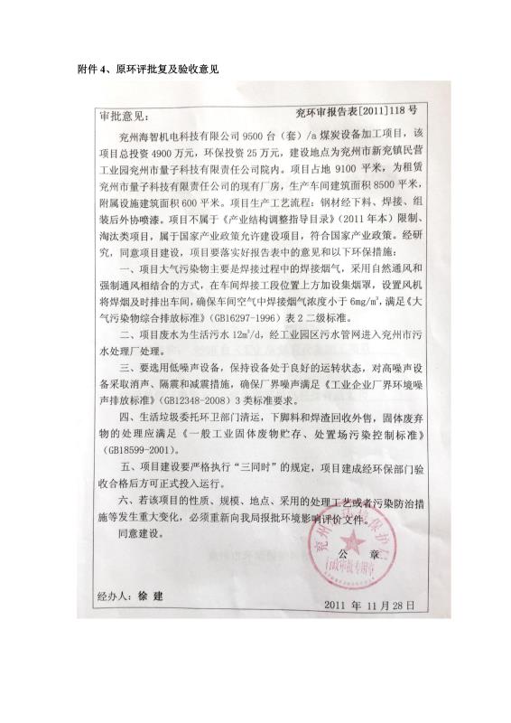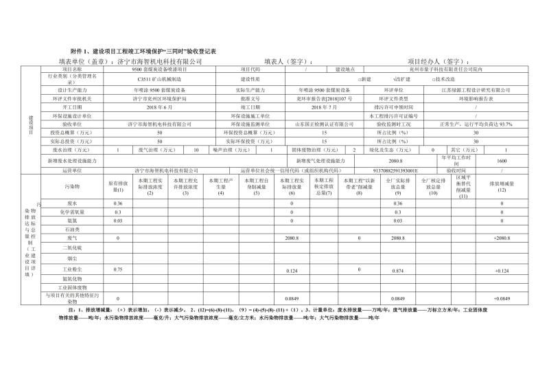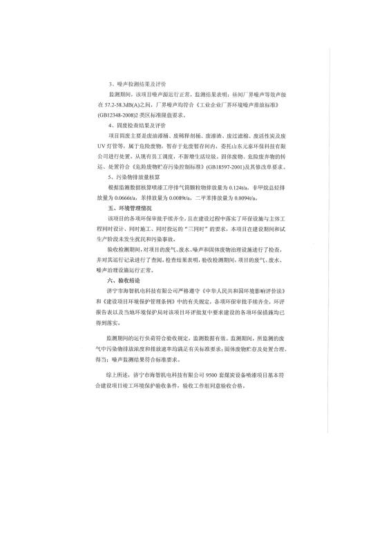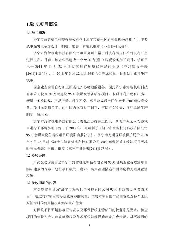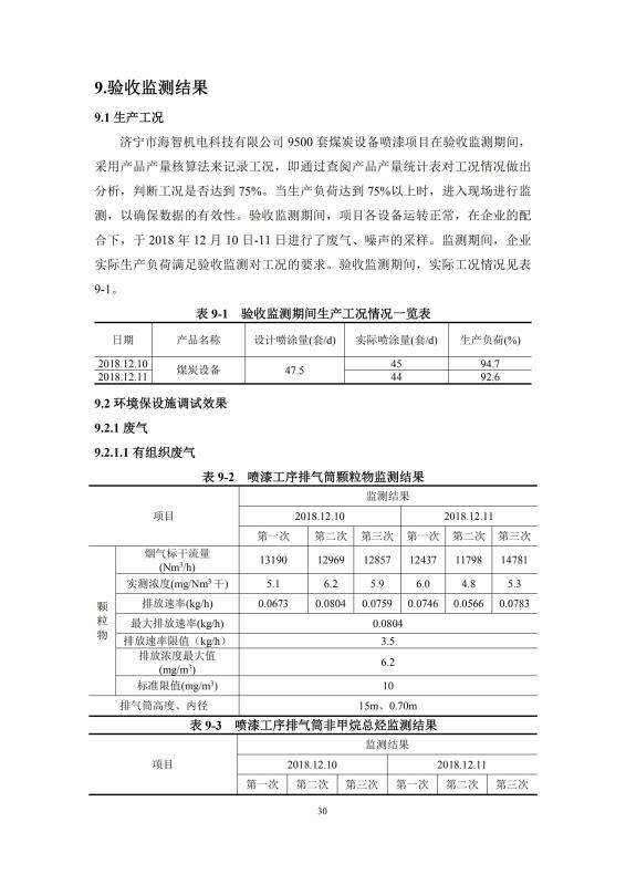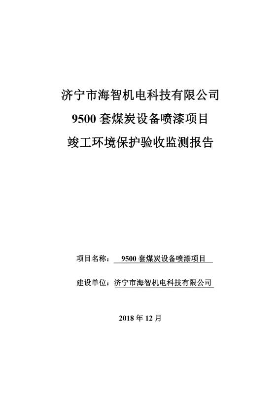 9500套煤炭設(shè)備噴漆項目竣工環(huán)境保護(hù)驗(yàn)收監(jiān)測報告