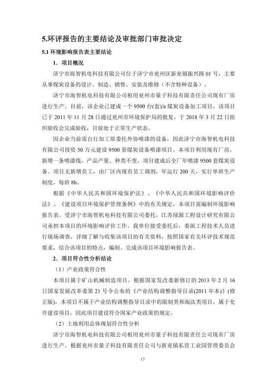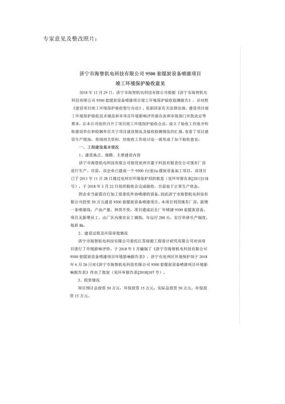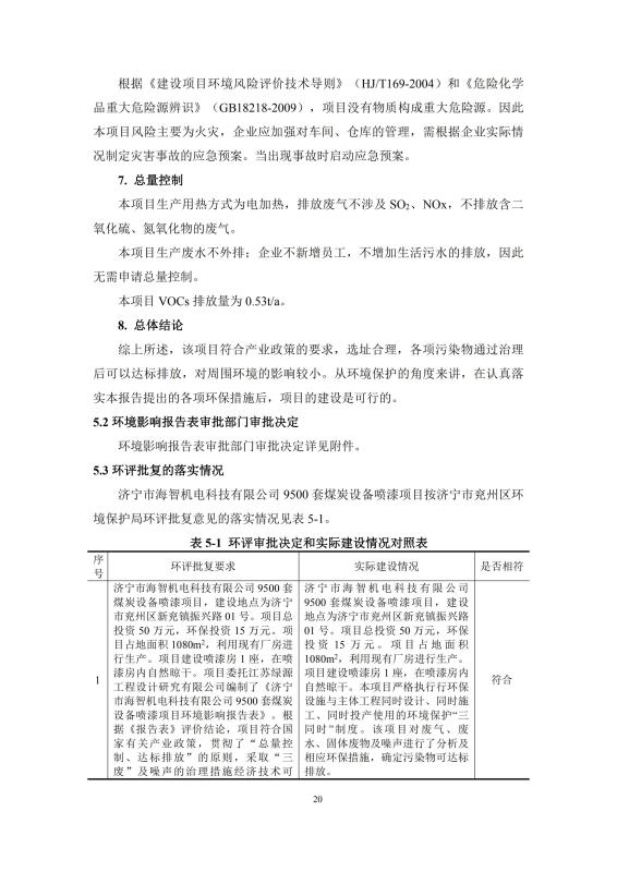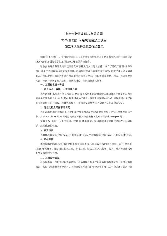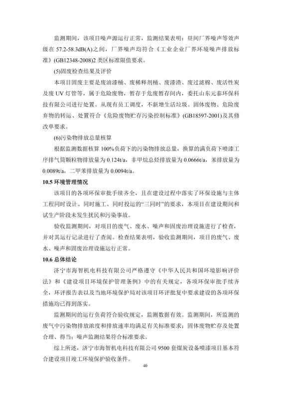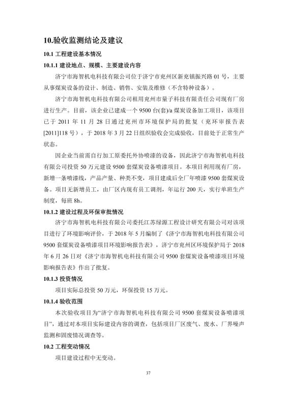 > 9500套煤炭設(shè)備噴漆項目竣工環(huán)境保護(hù)驗(yàn)收監(jiān)測報告