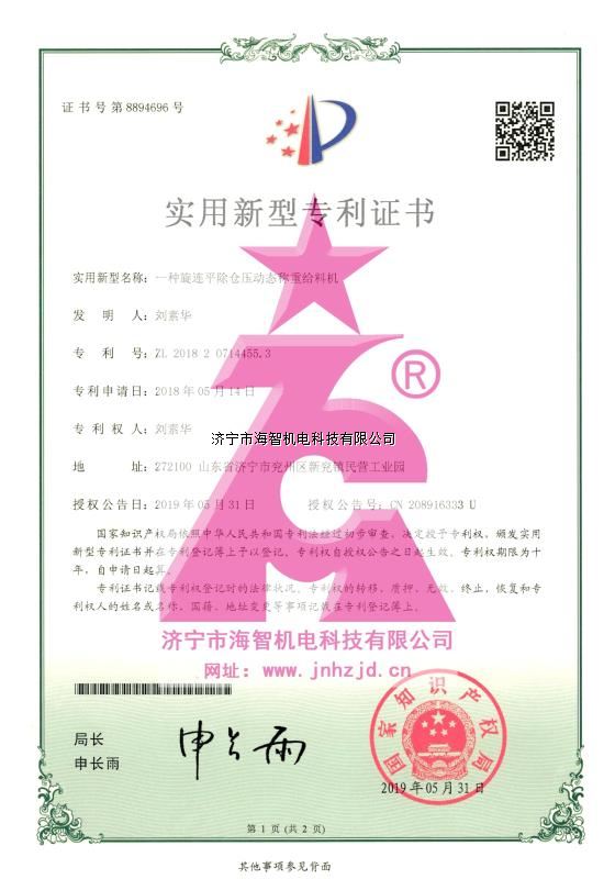 旋連平除倉壓動態(tài)稱重給料機是我公司在“傳統(tǒng)皮帶式稱重給料機”的基礎上進行技術升級的新型稱重給料機,我公司于2017年研發(fā)成功并申報了國家發(fā)明專利(CN201810452891)、實用新型專利(ZL201820714455.3),2017年已成功推向市場,通過精密計算巧妙設計完美解決倉壓變化對稱重精度的影響,變皮帶下設稱重傳感器稱重為旋連整體稱重,顛覆了給料機的傳統(tǒng)稱重原理,稱重導料關鍵部件采用我公司進口高精度大型數(shù)控機床一次性加工而成,誤差控制在0.002mm之內(nèi),確保稱重旋連位置無偏移,確保稱重精度。
