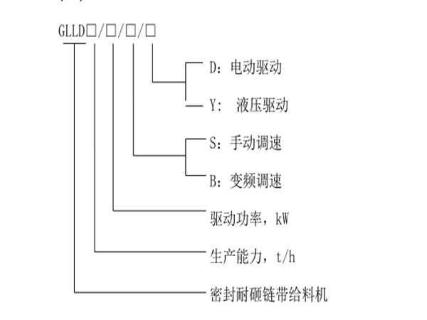 密封式耐砸鏈帶給料機型號說明: