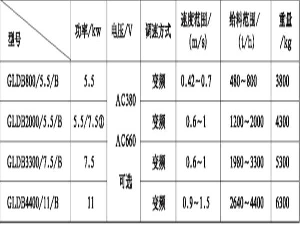 變頻調(diào)速給料機技術(shù)參數(shù):